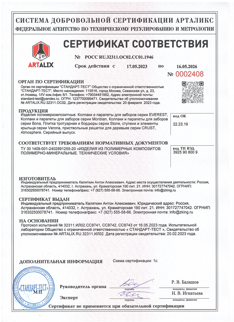 Сертификаты соответствия ZKING для Клина